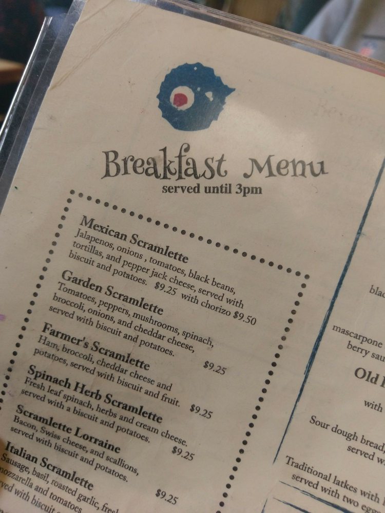 seared potatoes, caramelized onion and pepper, tomatoes, cheddar, two eggs, served with a biscuit